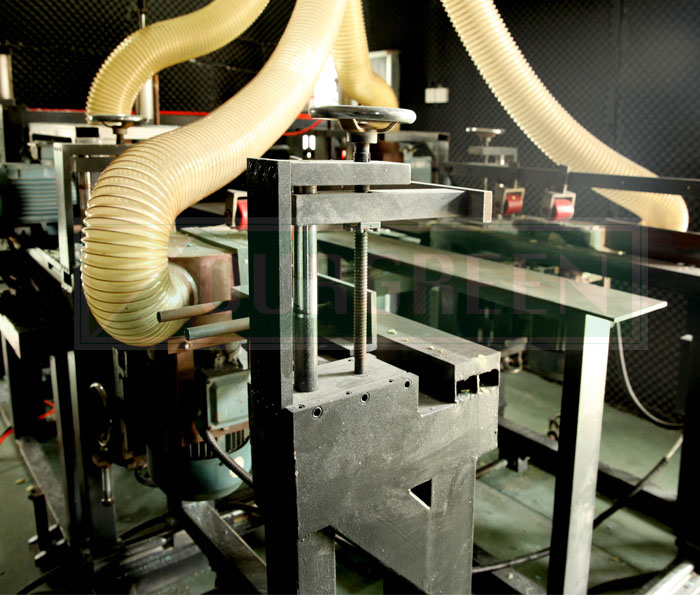南京歐格設計制造的粉碎開槽一體機由螺旋式粉碎刀、高速銑刀、電機、氣缸等組成。利用螺旋式粉碎刀和高速旋轉銑刀將板材兩邊破碎或破碎后再進行開槽。