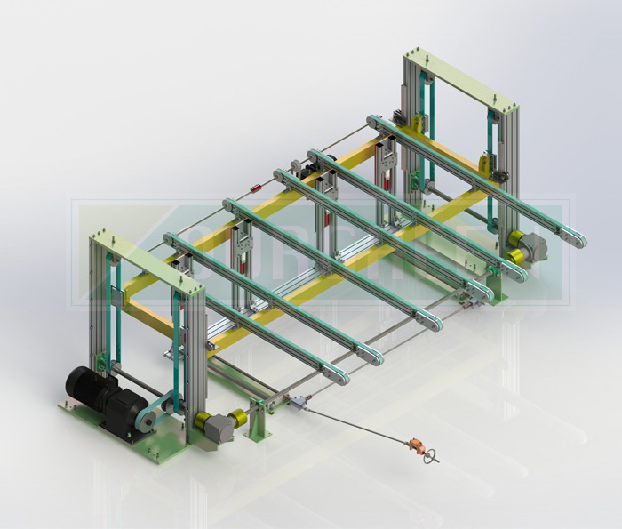南京歐格設(shè)計制造的碼垛機可將板材堆疊成包裝要求高度,輸出打包。